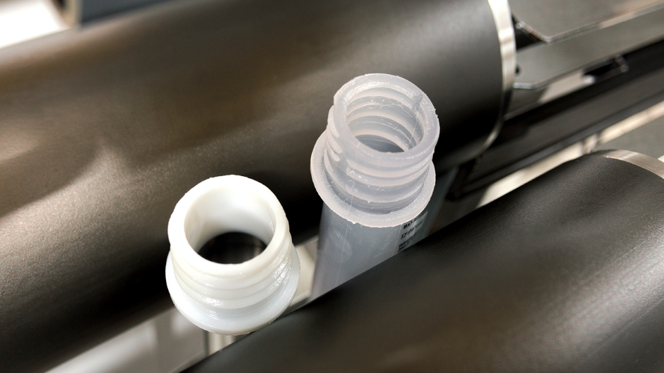 今回使用した3Dプリンターは液体のUV硬化性のアクリル樹脂を使用。本物のペットボトルと同様に透明材料が使用でき、かつ滑らかな造形ができるため実機検証に最適。 - 内製化による機密情報の漏洩リスク管理