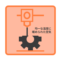 造形エリアで徹底した温度管理を行うヒートチャンバー機構により、材料の温度を均一に保ちます。